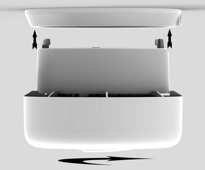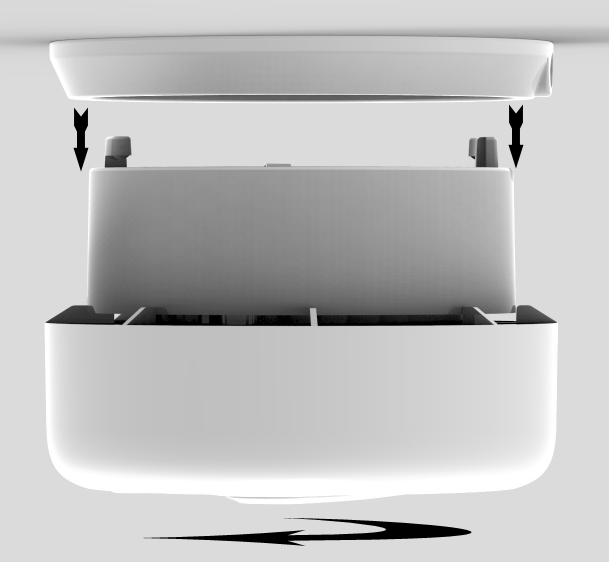 Poznámka: Pokud nemůžete alarm otočit po vložení háku do slotu, zkontrolujte, zda je baterie správně nainstalována.