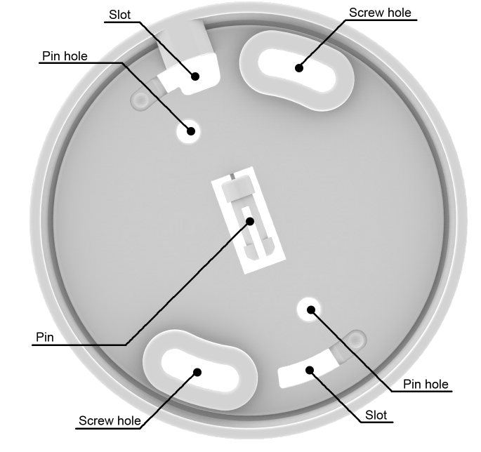 C. Zasuňte háček výrobku do slotu montážní desky. Potom vypněte alarm ve směru hodinových ručiček, dokud nezapadne na místo.