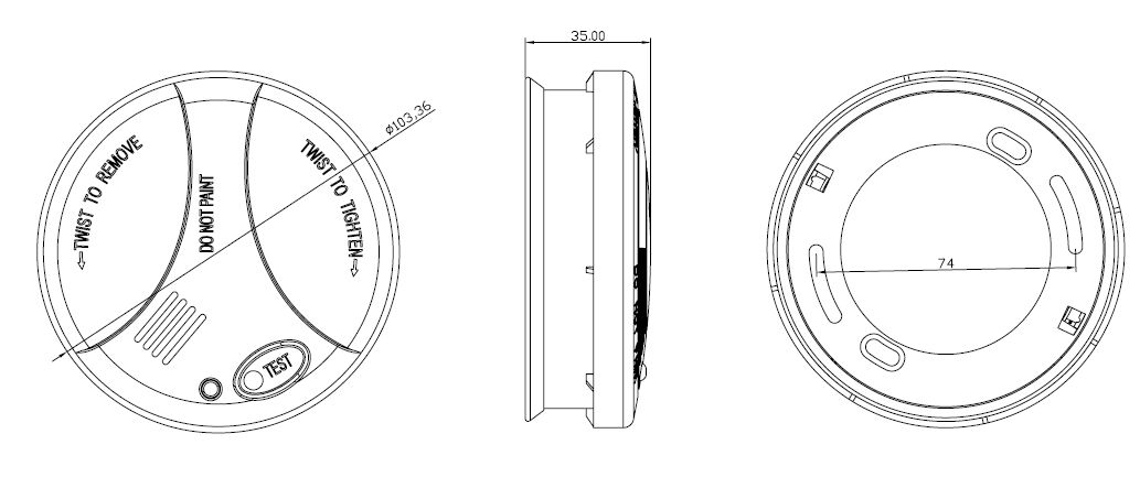 3, otočte detektor kouře ve směru hodinových ručiček, abyste jej pevně upevnili na instalační panel.